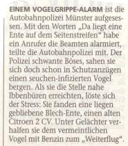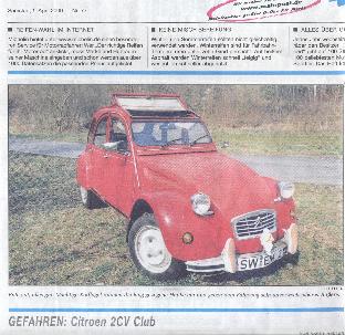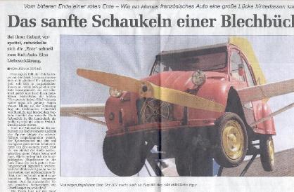 2CV einfach auf die Seite warfen. Leider wurde das Auto erheblich beschädingt und es fehlt jede Spur der VERBRECHER!! Daneben ist ein Komentar eines bekennenden Entenliebhabers, der härtere Strafen für