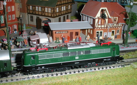 Die 151 in grün von Fleischmann. Sie hat 8100 PS und wiegt 118 to. Vmax ist 120km/h. |